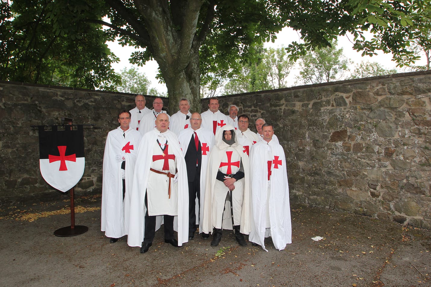 Weiße Umhänge mit roten Tatzen-Kreuz und ausgestattet mit den Ordens Insignien, so zogen die Ritter des Vereins: Freie Templer zu Tomar e.V. am Samstag den 10.08 2013 zur Investiturfeier in die Burg Sternberg ein. Unter uns 3 Anwärter für die Aufnahme.