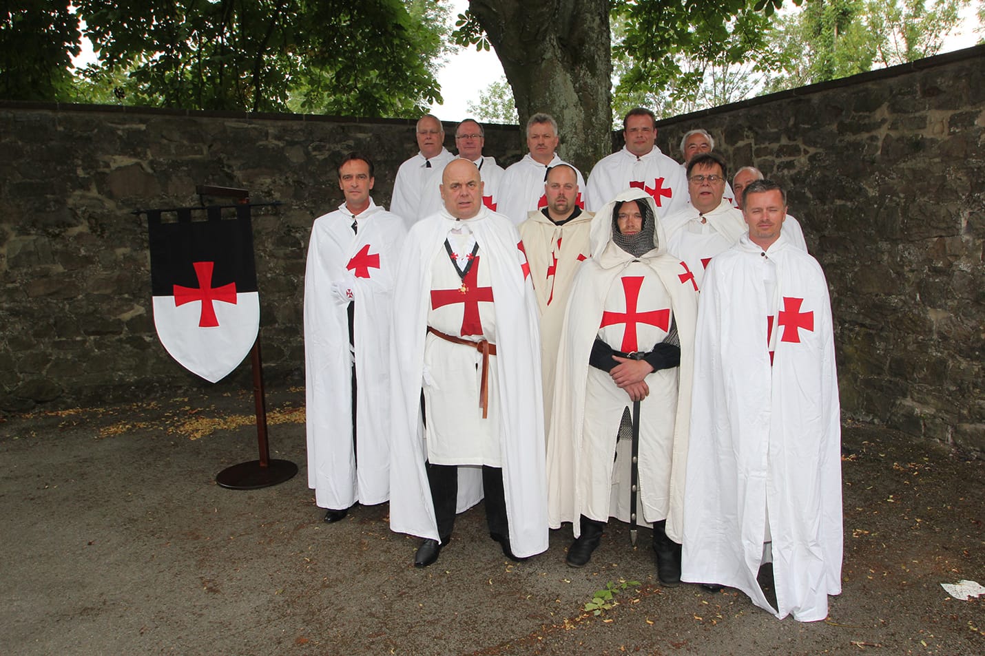 Weiße Umhänge mit roten Tatzen-Kreuz und ausgestattet mit den Ordens Insignien, so zogen die Ritter des Vereins: Freie Templer zu Tomar e.V. am Samstag den 10.08 2013 zur Investiturfeier in die Burg Sternberg ein. Unter uns 3 Anwärter für die Aufnahme.